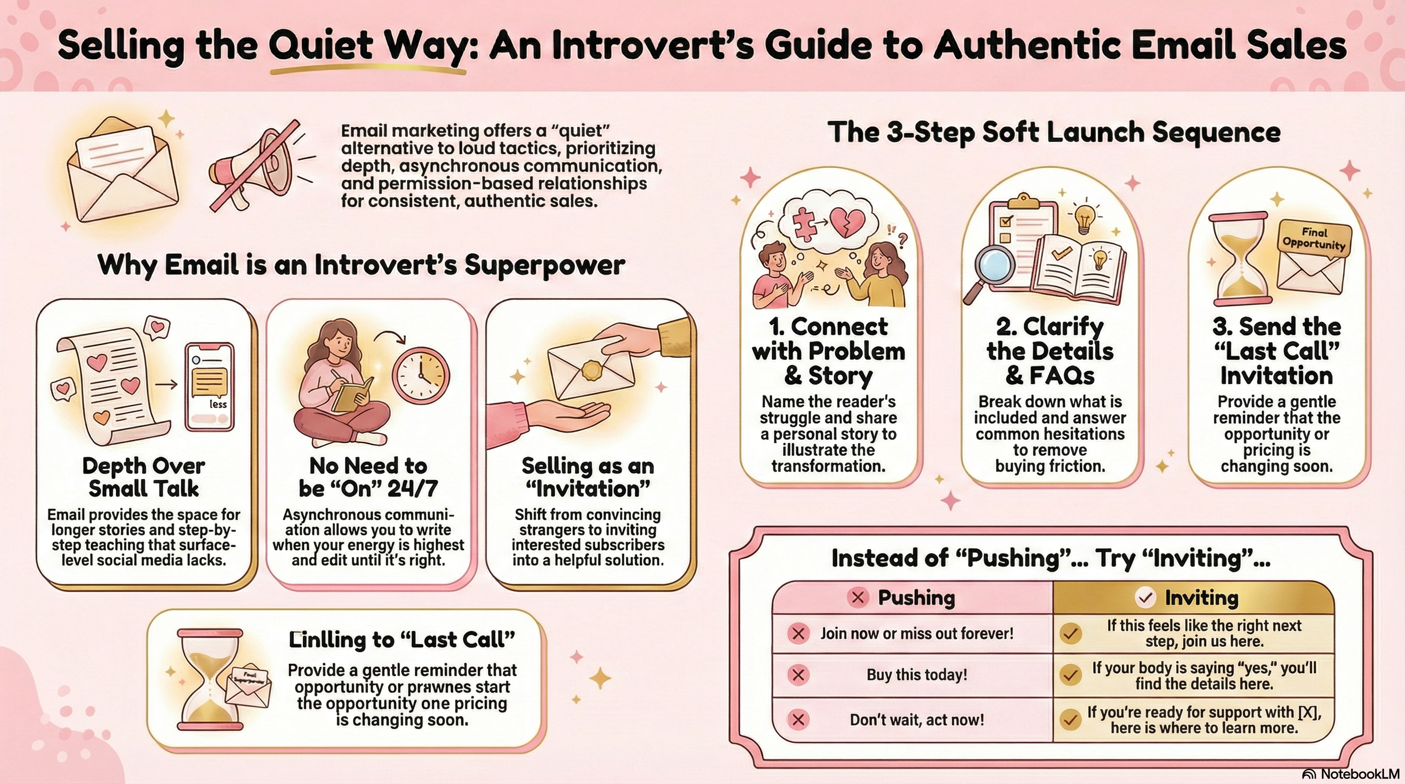 Learn how to sell with email as an introvert using gentle, honest strategies that protect your energy, build trust with subscribers, and book aligned clients.